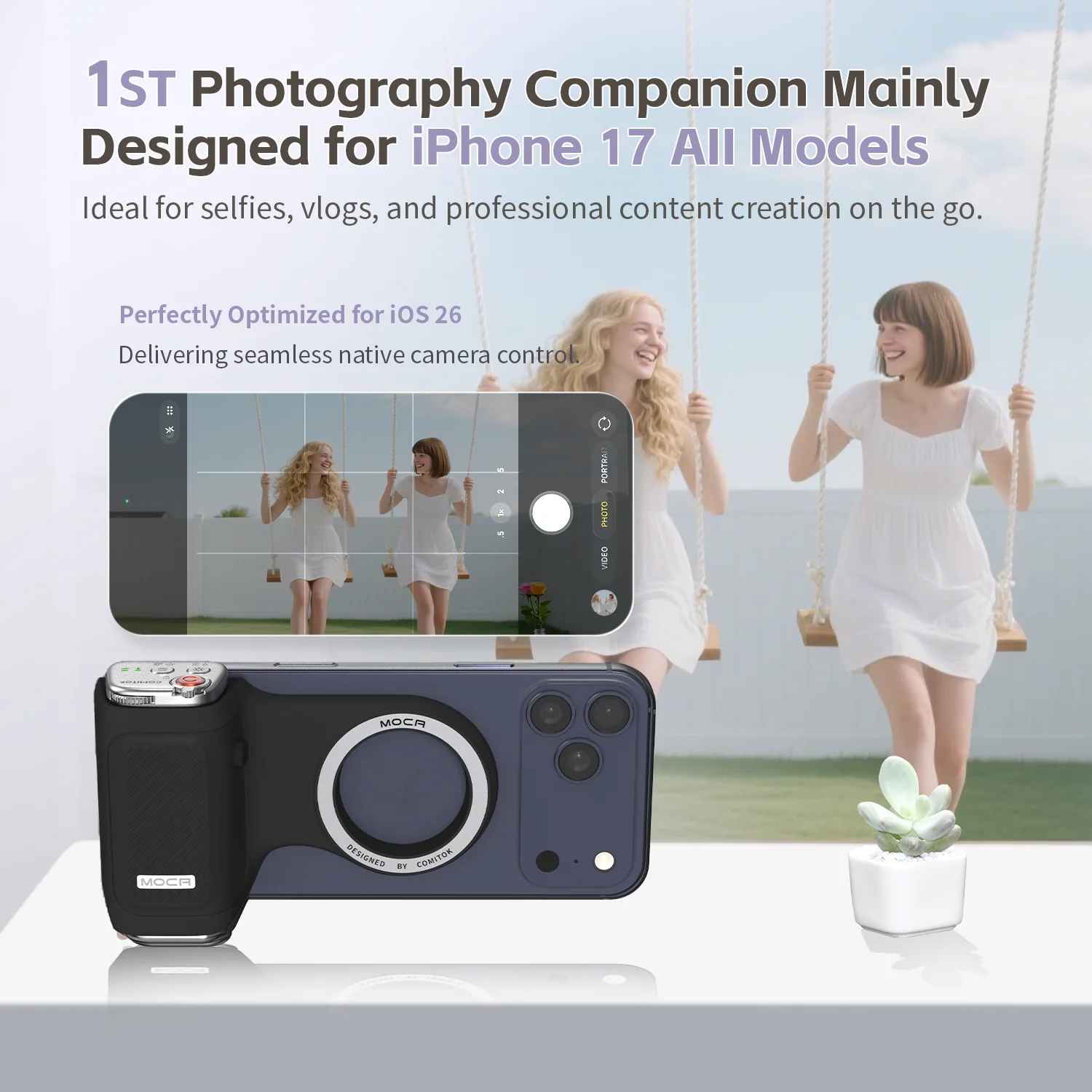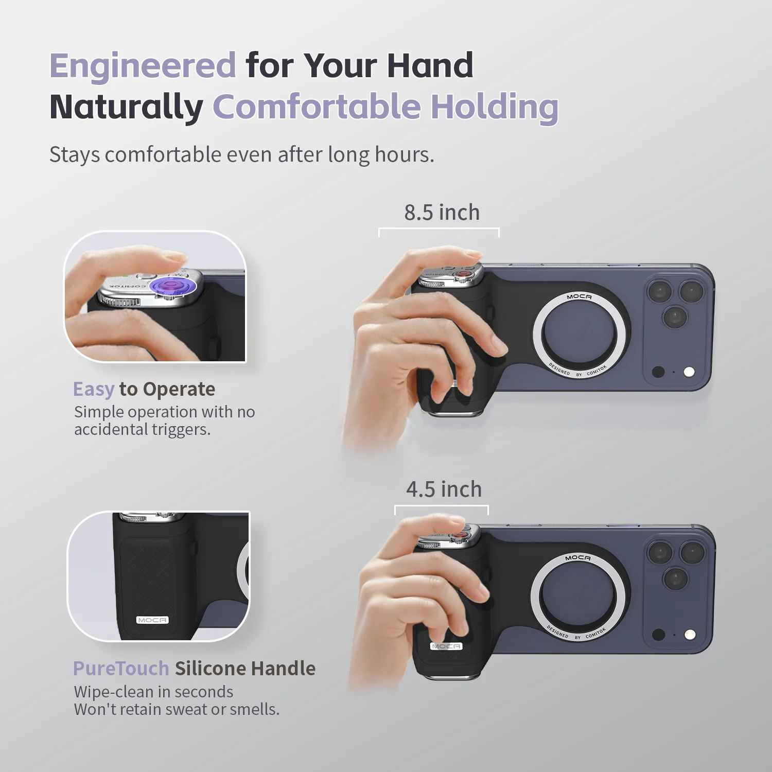 Capture stunning smartphone videos with the COMITOK Magnetic Phone Grip – engineered for content creators and vloggers. This portable shooting handle delivers rock-solid stability with one-handed control, eliminating shaky footage and hand fatigue. The integrated wireless remote lets you trigger recording, pause, and zoom without adjusting your grip. Powerful magnets securely cradle your iPhone while the lightweight, compact design makes it perfect for on-the-go filming. Whether you're vlogging, streaming, or creating social media content, this grip transforms your smartphone into a professional-grade video tool. Compatible with most devices and built to last.