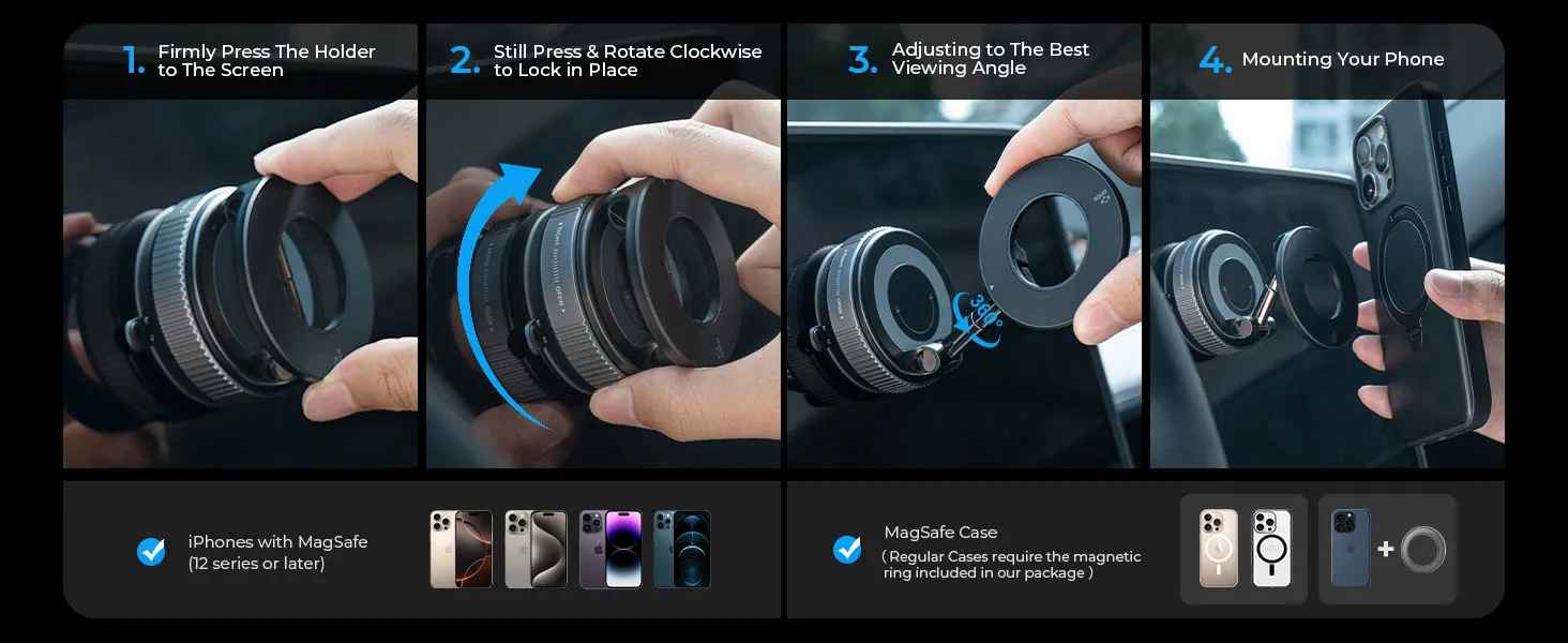 Secure your smartphone with this compact magnetic suction cup mount featuring 360° rotation for optimal viewing angles. The MagSafe-compatible design works seamlessly with compatible devices, while the powerful suction cup grips dashboards, windshields, and desks firmly. Its pocket-sized, foldable construction makes it perfect for travel and storage. Adjust the mount to portrait or landscape orientation instantly. Universal compatibility with magnetic phone cases ensures reliable hands-free navigation, video calls, and entertainment on the go.
