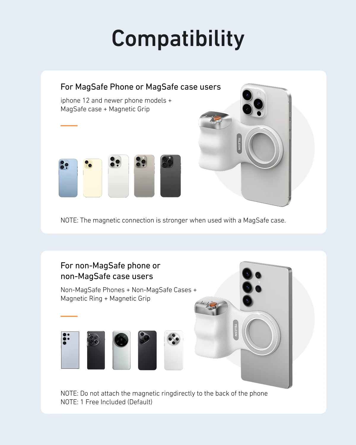 TELESIN Magnetic Camera Grip with Detachable Remote Shutter for All Smartphones