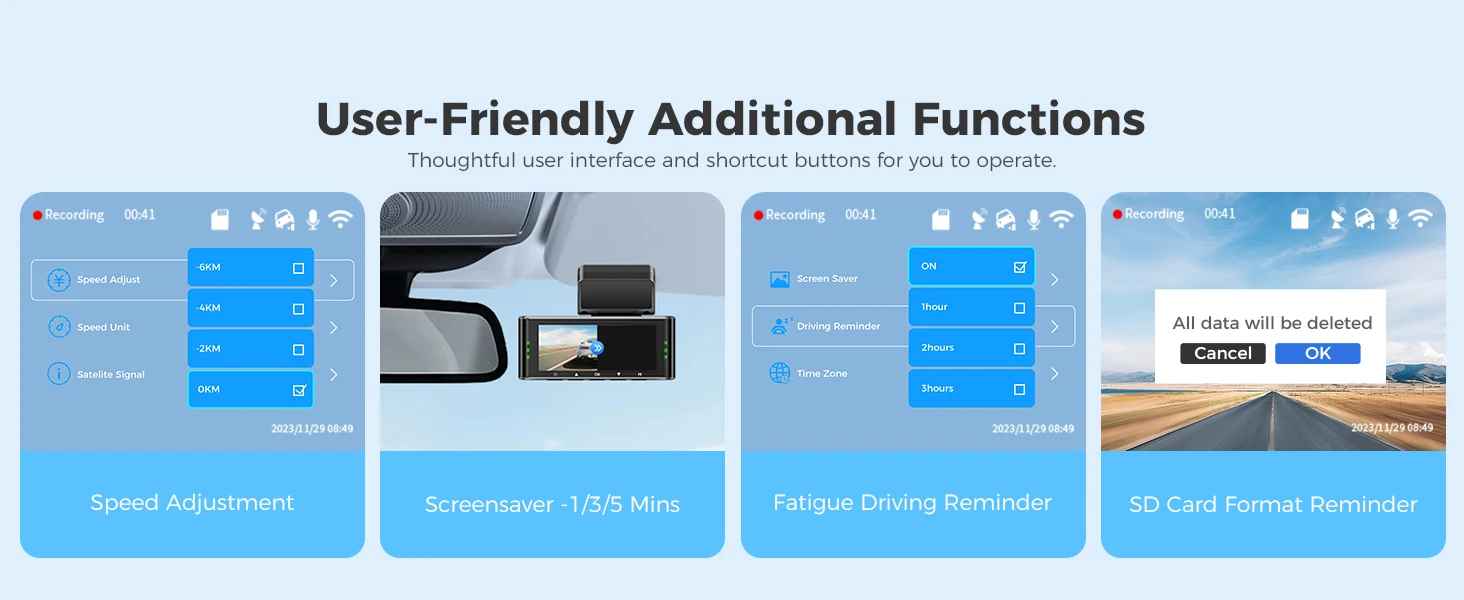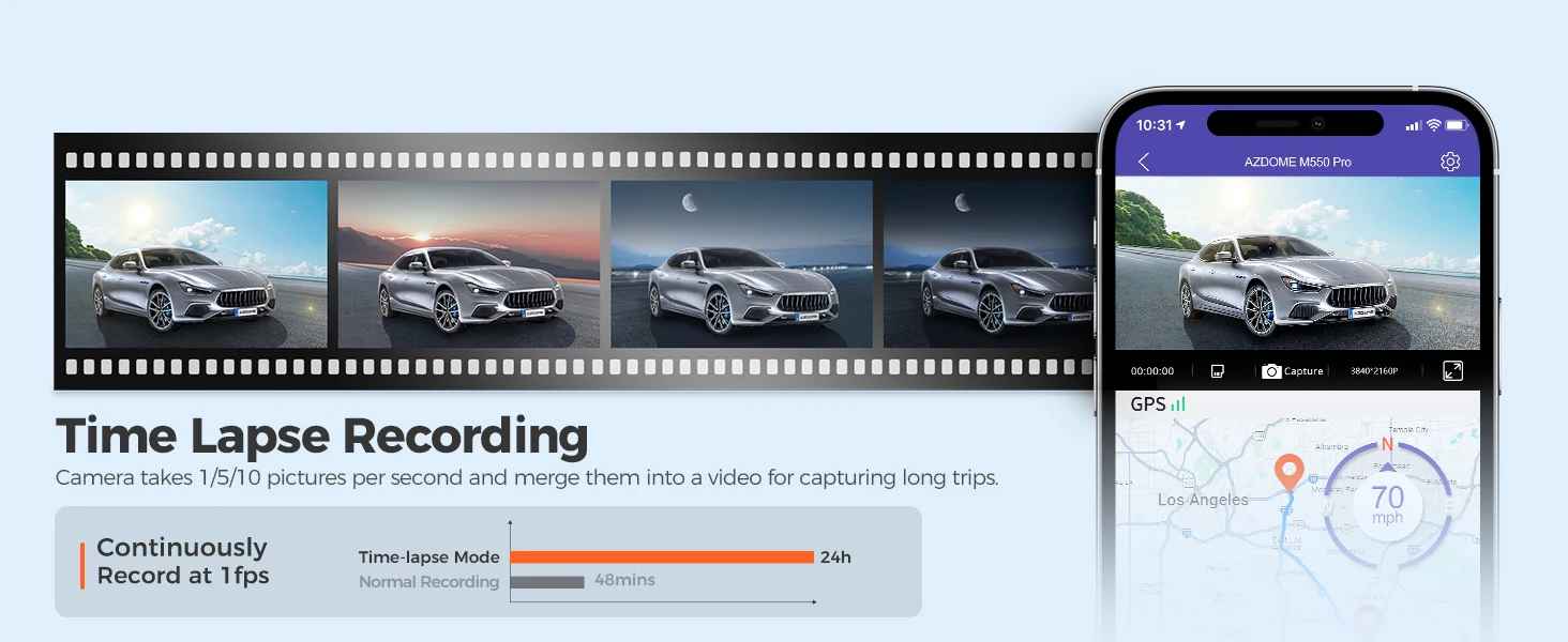 Die AZDOME 4K Dash Cam M550 Pro bietet professionelle Überwachung für Ihr Fahrzeug mit Ultra-HD 4K-Auflösung und kristallklarer Bildqualität. Das integrierte 5,8 GHz WiFi-Modul ermöglicht drahtlose Konnektivität und schnelle Datenübertragung, während das GPS-System präzise Standort- und Geschwindigkeitsdaten erfasst. Die fortschrittliche Nachtsicht-Technologie gewährleistet zuverlässige Aufnahmen auch bei schlechten Lichtverhältnissen. Mit Parkplatz-Monitor-Funktion und Unterstützung für eine Rückkamera erhalten Sie vollständige 360°-Abdeckung. Ideal für Sicherheit, Versicherungsschutz und Fahrtendokumentation.